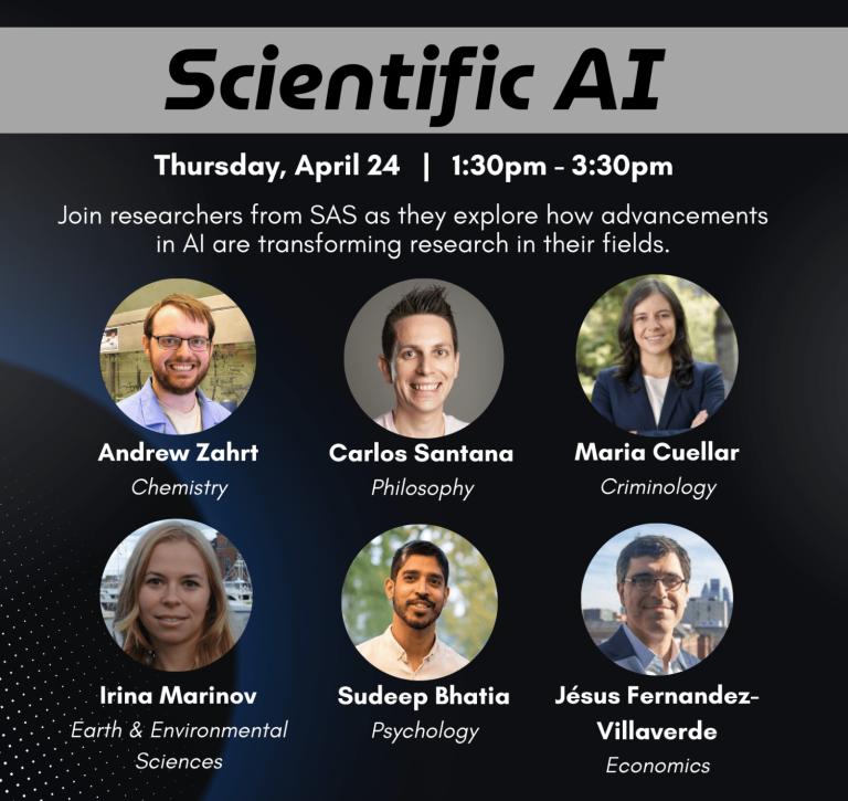 Join researchers from across the School of Arts and Sciences as they explore how advancements in AI are transforming their work and unlocking new frontiers in their fields. This event aims to explore how AI is shaping research across SAS, fostering interdisciplinary dialogue and a broader understanding of AI’s impact on scientific progress.